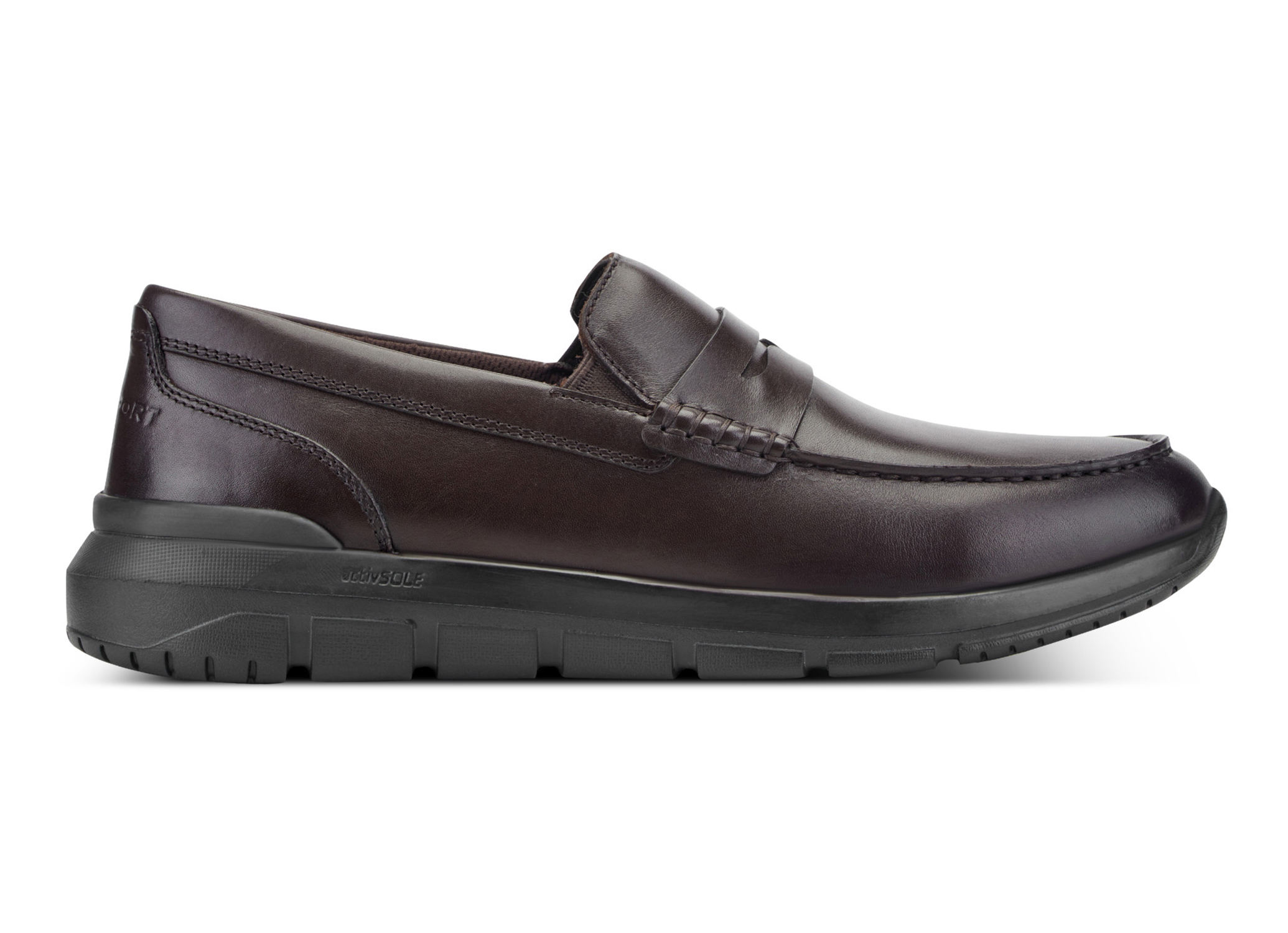 トレンド感のあるボリュームソールと、オーセンティックなペニーローファーのデザインを融合させた「JAYCE(ジェイス)」。重厚感のある見た目ですが、ソール全体に軽量かつクッション性に優れたEVA素材を採用することで、手に取った瞬間、そして履いた瞬間に驚くほどの「軽量性」を実現しました。機能面では、クッション性と反発力が持続する独自の「activSOLE(アクティブソール)」を搭載。一歩踏み出すたびに弾むような推進力を生み出し、長時間歩いても軽快な足取りをキープします。さらに、かかと部分には衝撃吸収素材「truTECH(トゥルーテック)」を内蔵し、着地時の負担を最小限に抑えます。アッパーには上質なカウレザーを使用し、大人の品格もしっかりキープ。ビジネスカジュアルから休日のタウンユースまで、軽やかに、そしてスタイリッシュに歩きたい男性のためのハイブリッドシューズです。