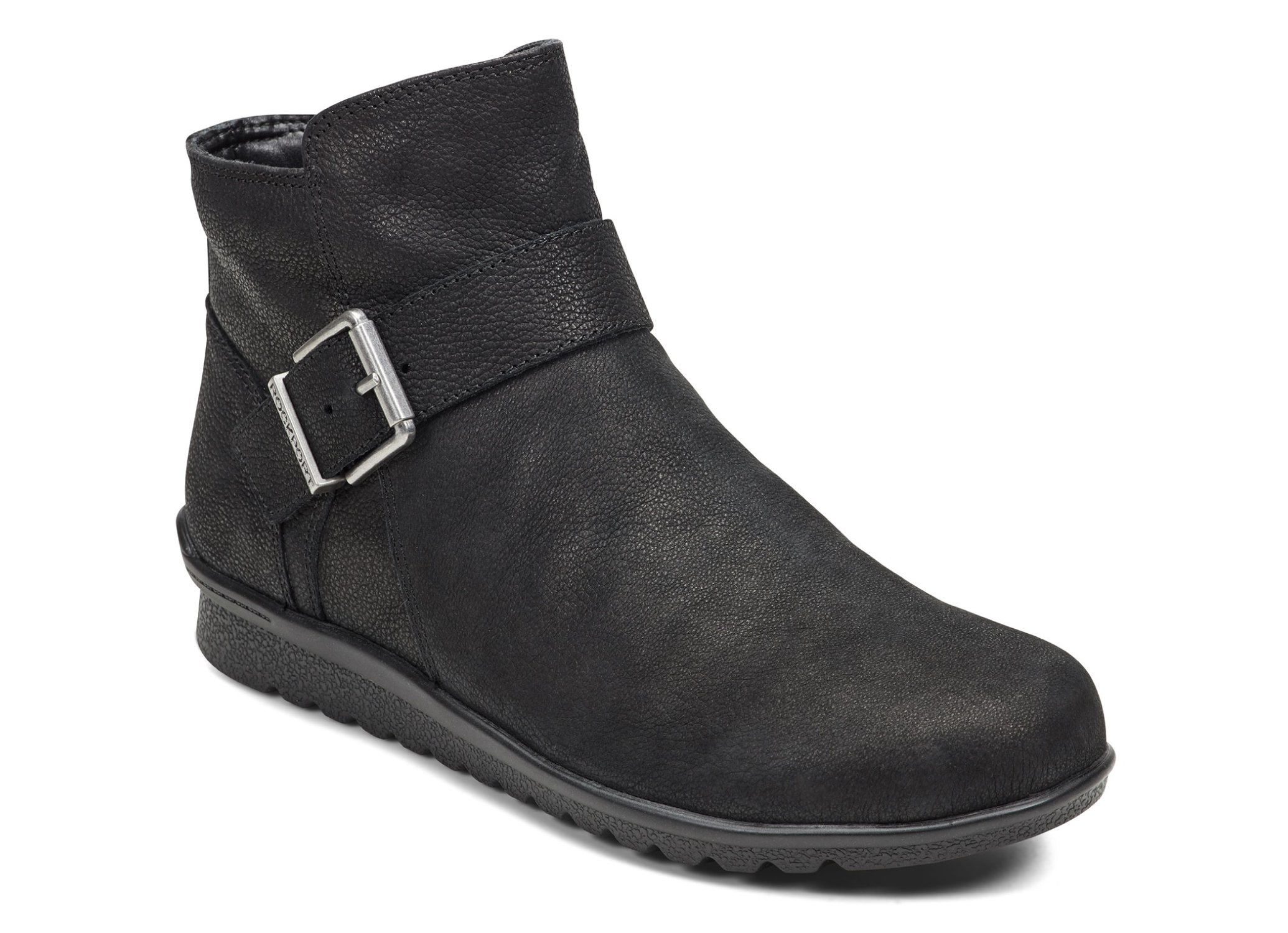 ベルトデザインが程よいアクセントを添えるショートブーツ。歩きやすさに定評のある軽量な「トゥルーフレックス」コレクションのスニーカーソールを採用しました。ミッドソールのEVAスパイン構造は、足をしっかり支えながら衝撃をやわらげ、前に進む力をサポート。アウトソールには歩行の動きに合わせてソールを屈曲させる「Flex Grooves(フレックスグルーヴ)」構造を搭載することで、長時間の歩行でも疲れにくいのが特長です。さらにインソールの「truTECH(トゥルーテック)」テクノロジーが、着地の際の衝撃を吸収します。スニーカーのような履き心地ながら、シボ感のあるアッパーレザーが落ち着いた印象で、大人のカジュアルスタイルにおすすめのブーツです。忙しい朝や外出先でも便利なサイドジップ仕様。パンツはもちろんロングスカートとも好相性で、普段のお出かけから旅行まで、幅広いシーンで頼れる一足です。