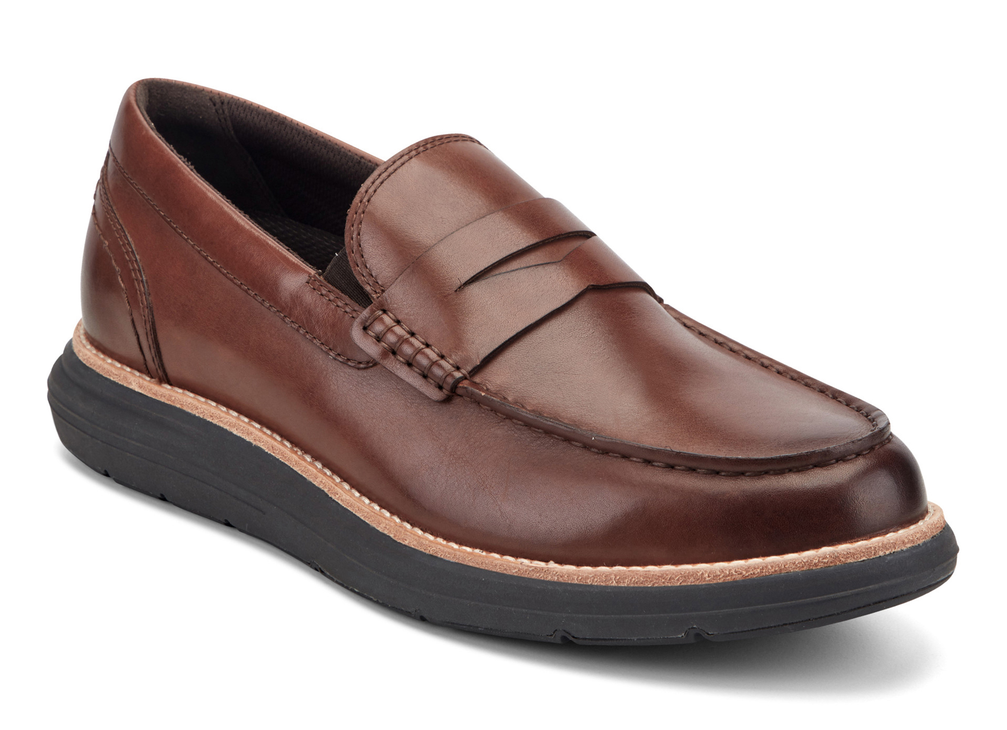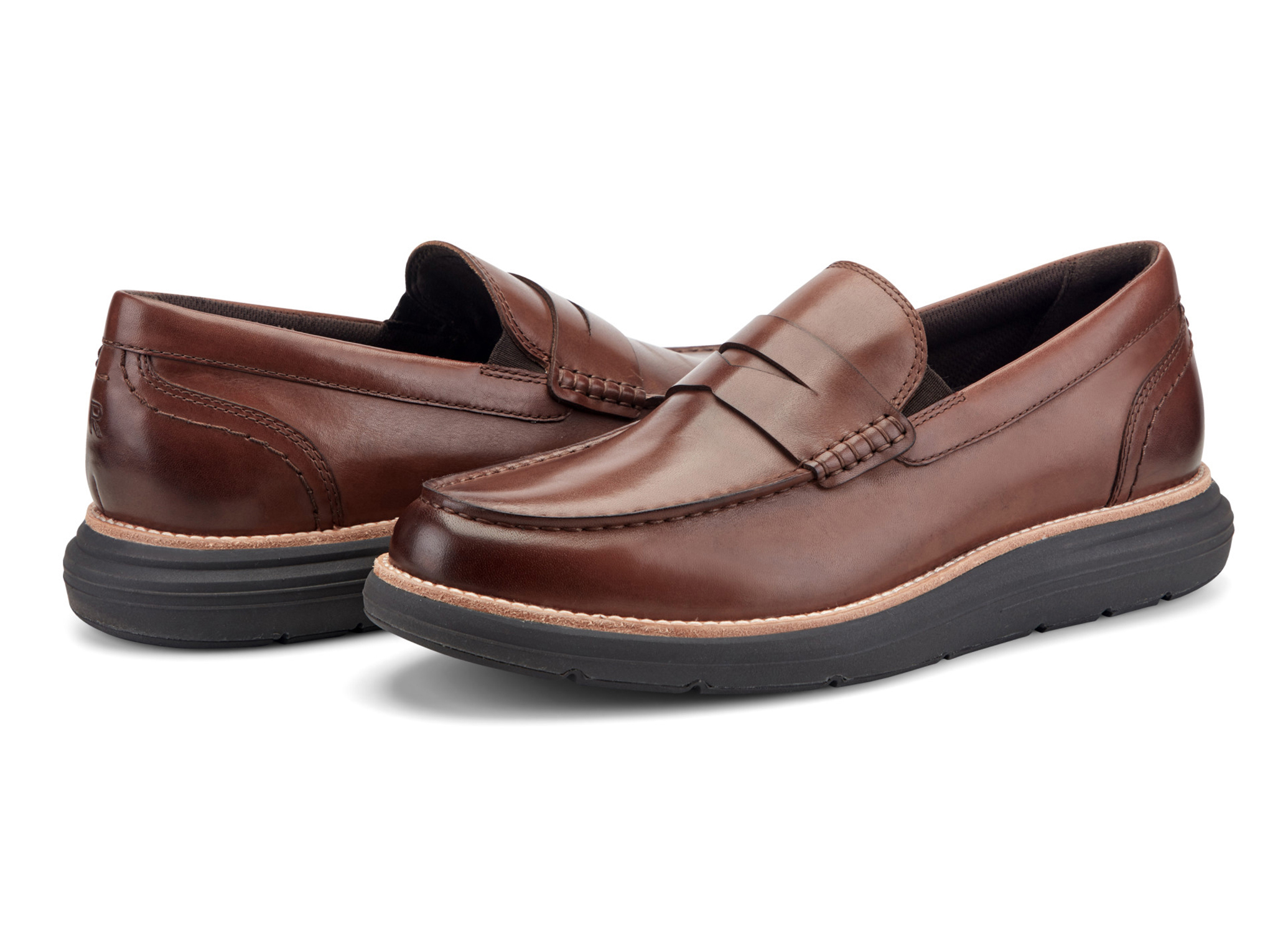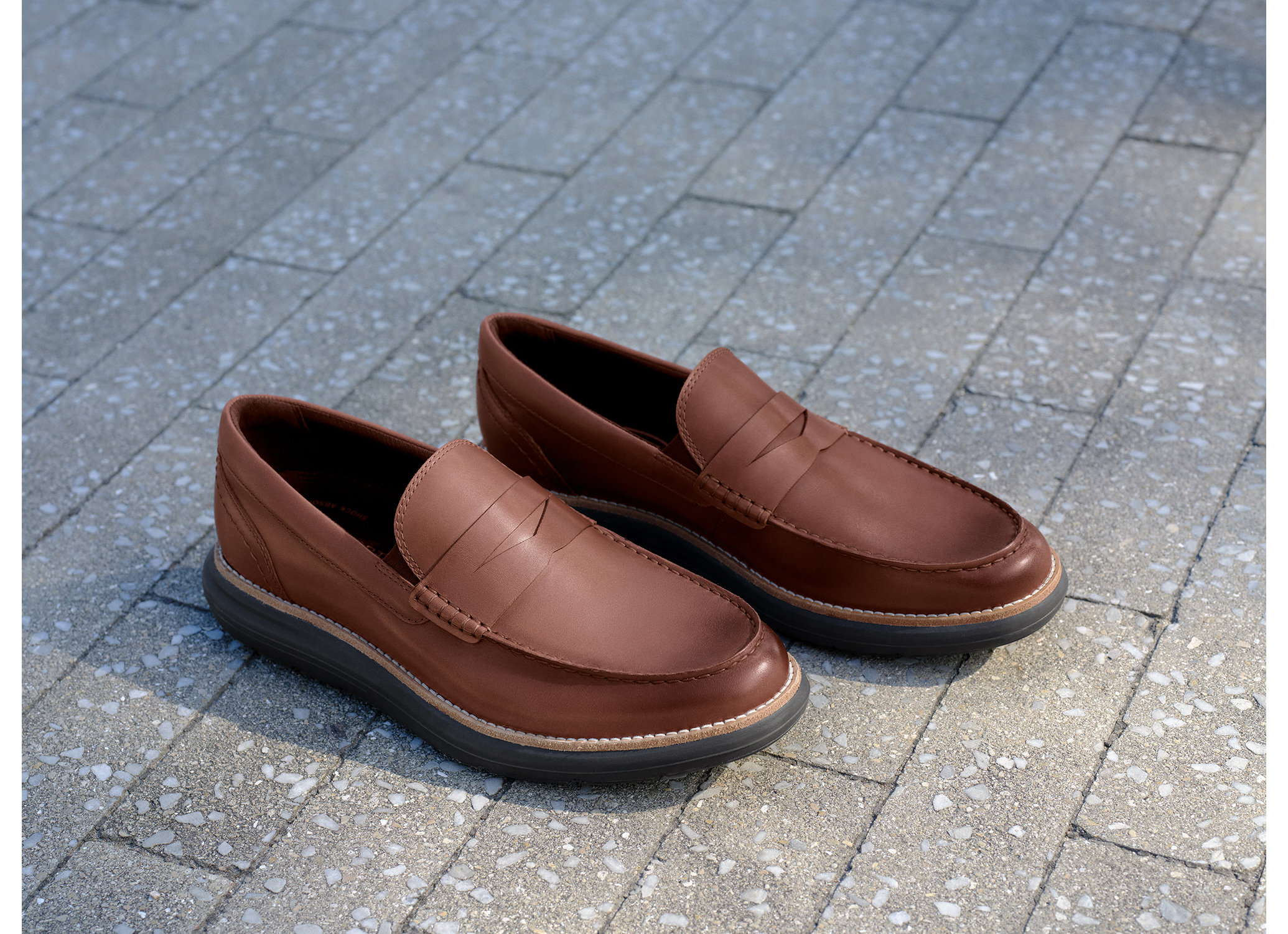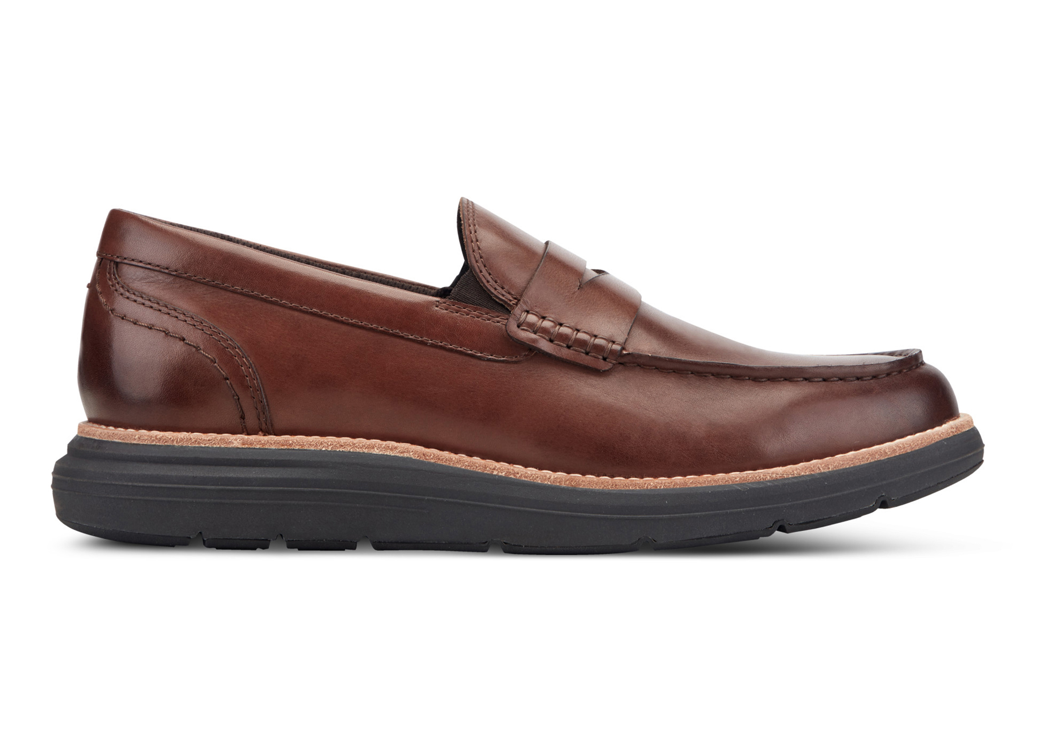 オーセンティックなペニーローファースタイルに、スポーツシューズ並みのテクノロジーを搭載した「トータルモーション キャドウィン」。アッパーは、手染めと磨きでアンティーク調に仕上げた「バルボアクラストレザー」と、イタリアの高級タンナーが手掛ける微起毛の「ブリスオイルスエード」の2種類を採用。上質なレザーの質感とボリュームのあるソールが、ビジネスカジュアルの足元に程よい抜け感と品格をプラスします。約4cmの厚底ソールは、ステッチ入りのレザーウェルト、軽量EVAミッドソール、独自のTPUプレート、高耐久の全面ラバーアウトソールを重ねたこだわりの4層ウェッジ構造。本モデルでは、トータルモーションの特徴でもある安定性を高めるプレートが進化。従来は中央部のみの配置でしたが、「背骨」のような形状の背骨のようにソール全長へ伸びるプレートを採用しました。かかと部分を厚くしてローファー特有の「歩行時のグラつき」を制御し、薄くした前足部がしなやかな反り(スナップバック)を生み出すことで、圧倒的な安定感を実現します。フットベッドは軽量EVAをベースに、かかとへ衝撃吸収素材「truTECH」を組み込んだ2ピース成型。高級マイクロファイバーと吸湿速乾スポーツライニングの組み合わせが、靴内を一日中ドライで快適に保ちます。履き口両サイドのダブルアイロウゴア(隠しゴム)が、甲へのフィット感とスムーズな脱ぎ履きをサポート。ジャケパンスタイルから休日のデニムまで、オンオフ問わず活躍する万能ローファーです。
